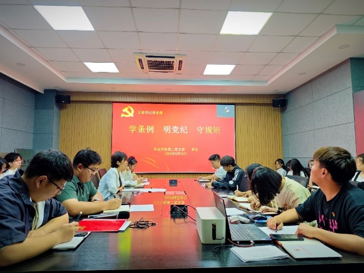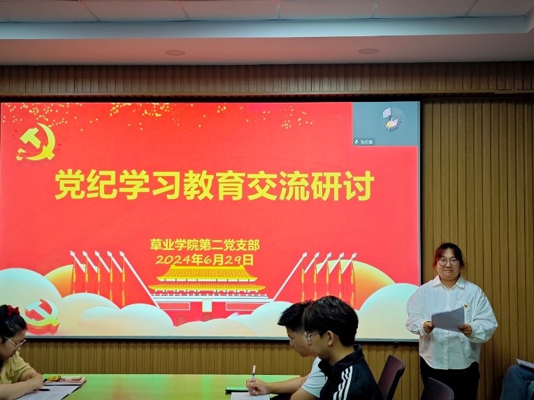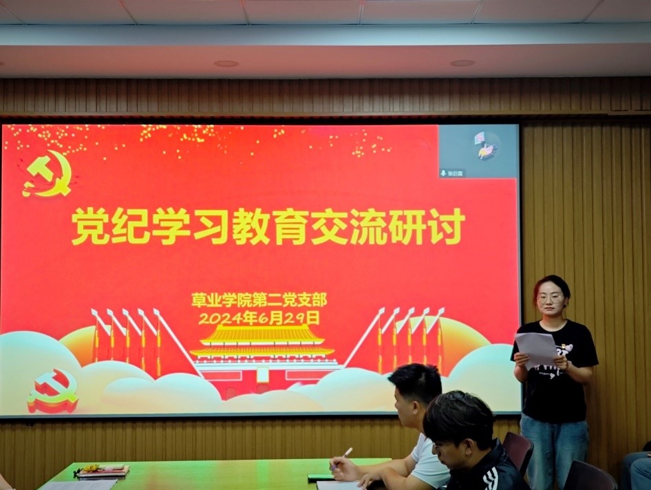 6月28日,公司第一党支部书记杨超以“学习《中国共产党纪律处分条例》 做遵规守纪科研人”为题,为教工党员讲授纪律党课。他从历史、理论、实践三个维度出发,阐述了《条例》修订的重大意义,要求全体党员要强化纪律意识,加强自我约束,始终做到忠诚干净担当,以严明的纪律、严格的要求和严谨的态度做好教书育人、科学研究等各项工作,为公司发展建设和公司第三次党代会目标的实现贡献草业力量。
