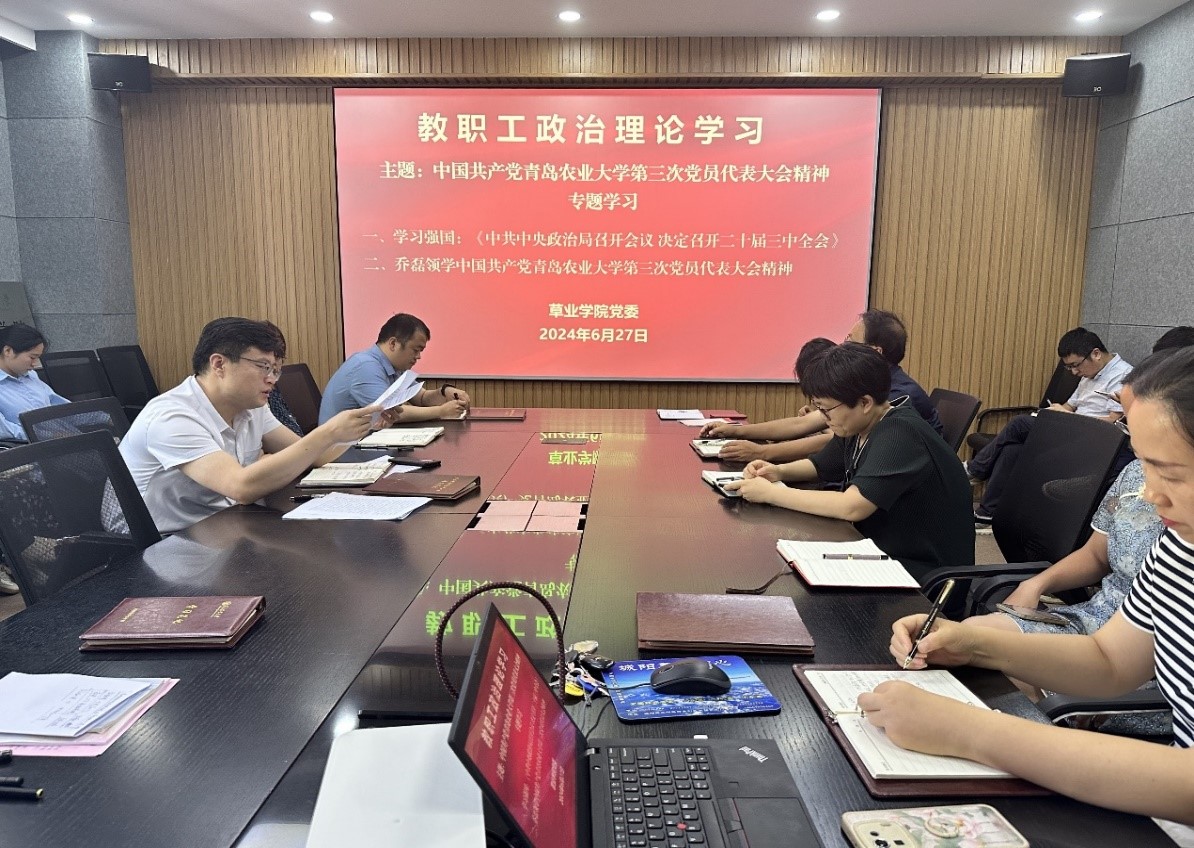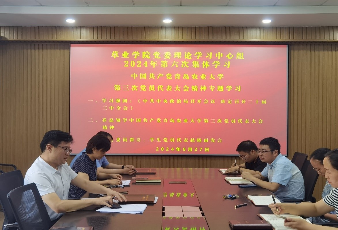 近日,草业公司党委通过各种形式组织师生党员、教职工、青年员工全面学习122cc太阳成集团官网第三次党员代表大会精神,进一步把全院的思想和行动统一到党代会精神上来,把智慧和力量凝聚到党代会确定的目标任务上来。