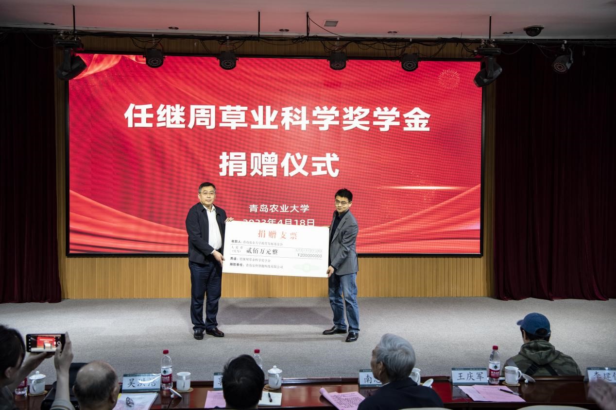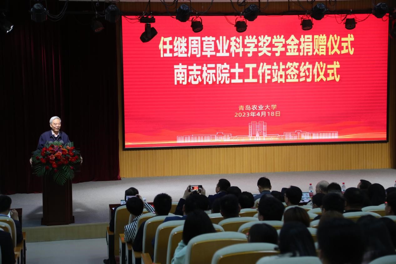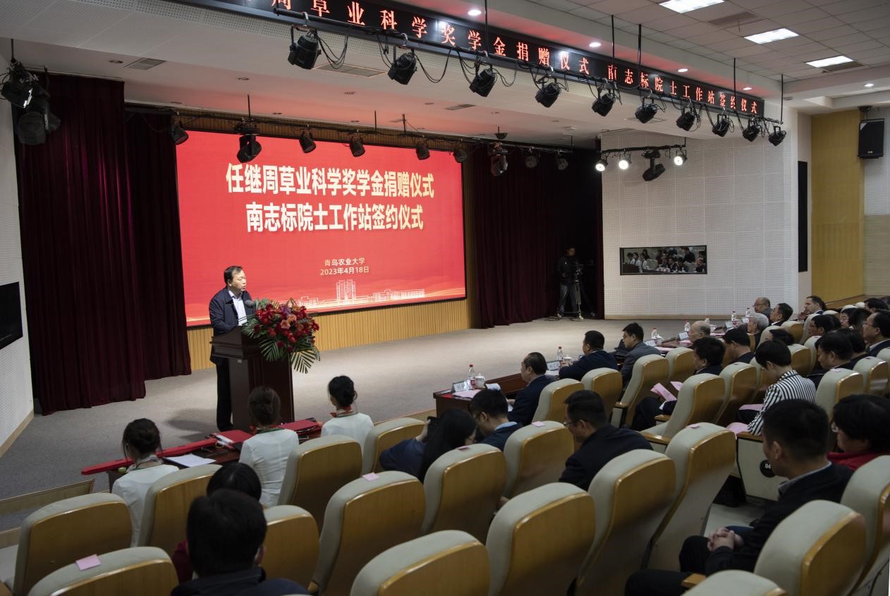 4月18日,任继周草业科学奖学金捐赠仪式、南志标院士工作站签约仪式在122cc太阳成集团官网学术会馆第二报告厅成功举行。中国工程院南志标院士,青岛农业大公司党委书记郭善利同志,122cc太阳成集团官网董事长刘新民同志, 公司党委副书记、校教育发展基金会理事长王庆军同志,国内高校、科研院所草业领域专家学者,关心太阳成集团tyc122cc发展的社会人士,公司教育发展基金会全体理事和相关部门负责人,太阳成集团tyc122cc负责人及师生代表出席和参加了仪式,仪式由刘新民董事长主持。