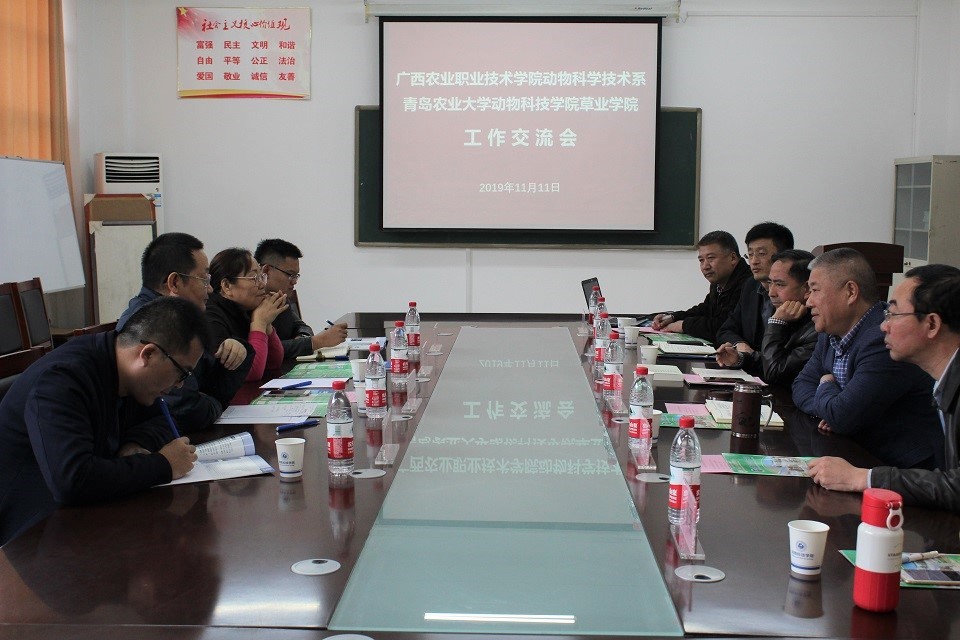 李军成对公司表示感谢,并介绍了广西农业职业技术公司动物科学技术系的基本情况,对122cc太阳成集团官网马业科学专业获教育部批准设立表示祝贺,希望双方密切合作交流。
