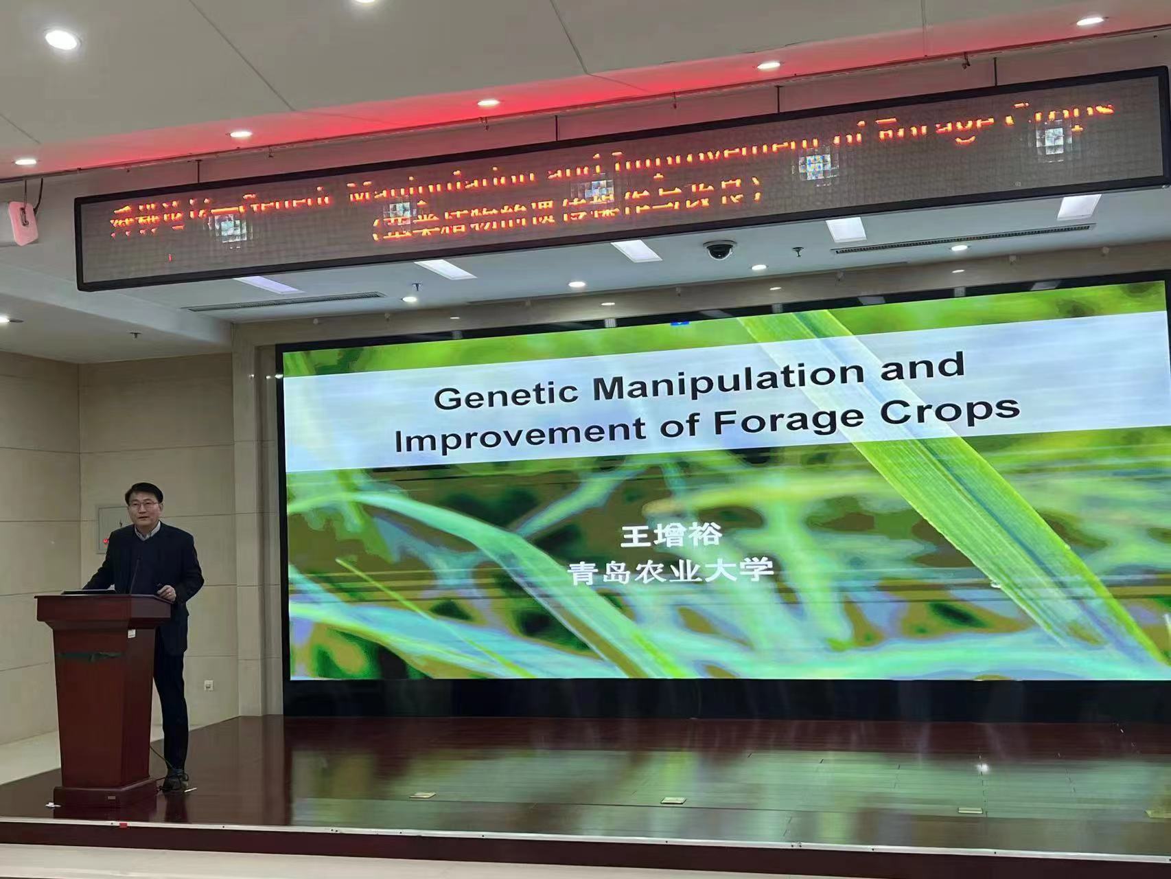 近日,太阳成集团tyc122cc经理王增裕教授受山东省农科院休闲农业所邀请做客“舜耕论坛”,做了题为《Genetic Manipulation and Improvement of Forage Crops(草类植物的遗传操作与改良)》的学术报告。报告会由山东省农科院科技管理处副处长韩宗福主持,休闲农业所党总支书记、所长王绛辉,副书记贾春林,副所长王琦,以及来自山东省畜牧总站,农科院山东省农业机械科学研究院、畜牧兽医研究所、经济作物所、种质资源所等单位科研人员50余人参会。会前,山东省农科公司党委副书记、经理李向东,公司党委委员、副经理刘开昌会见了王增裕教授。