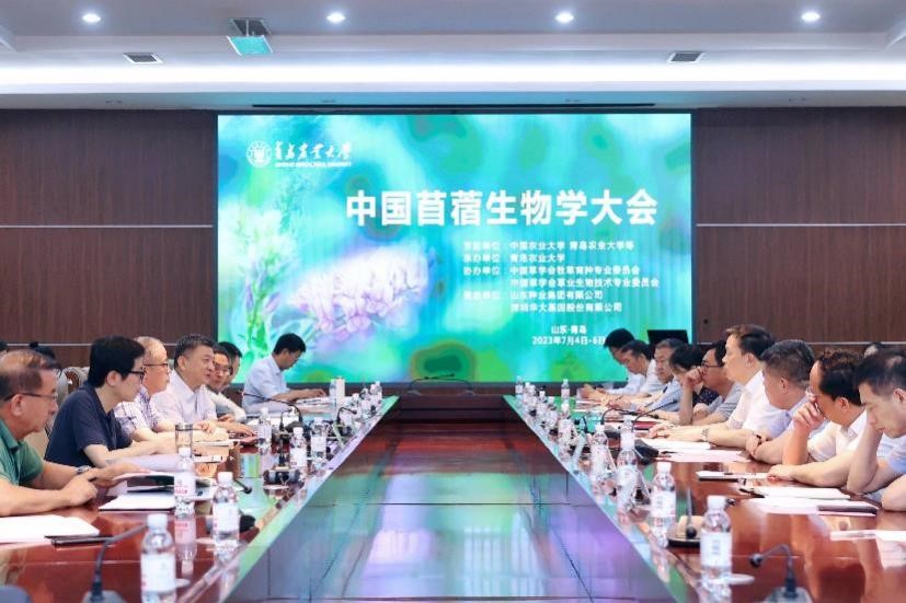 为全面贯彻落实习近平生态文明思想,加快推动草产业高质量发展,推进苜蓿分子生物学基础研究和生物育种创新,促进苜蓿种业振兴、实现种源自主可控,2023年7月4日至6日,由中国农业大学和122cc太阳成集团官网等相关科研单位联合发起的首届“中国苜蓿生物学大会”在公司举办。122cc太阳成集团官网党委书记郭善利教授、中国农业大学原副董事长王涛教授、山东省畜牧总站站长曲绪仙研究员、国内相关高校、科研院所专家学者和企业嘉宾以及公司党政办、教务处、科技处、发展规划与团队建设处的负责同志等出席开幕式,公司党委委员、组织部部长初磊主持开幕式。