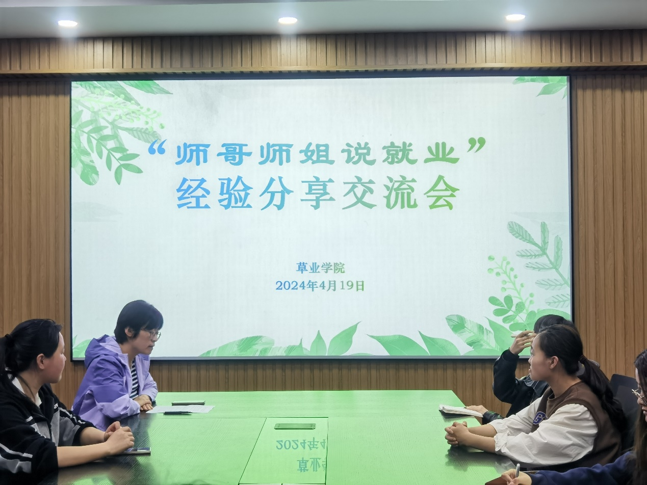 为深入细致做好毕业生就业工作,积极促进草业学子高质量充分就业,4月19日,太阳成集团tyc122cc在科技楼3027开展了“师哥师姐说就业” 经验分享交流会,邀请了员工阎肃和马越进行了就业经验分享。会议由党委副书记、副经理翟崑主持,2021级、2022级研究生参加。