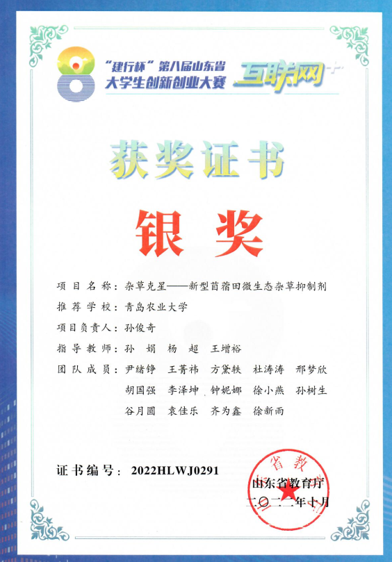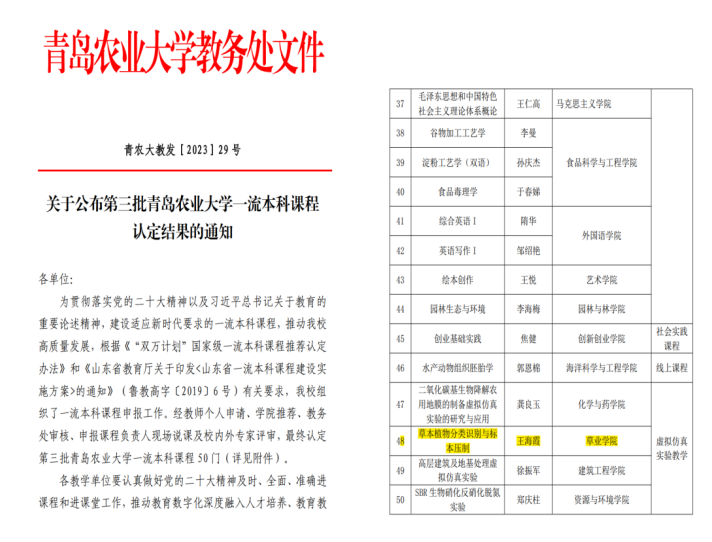 4.山东省本科高校教学改革研究项目—“思政引领、专创融合”草业科学专业耕读教育体系建构与实践路径研究