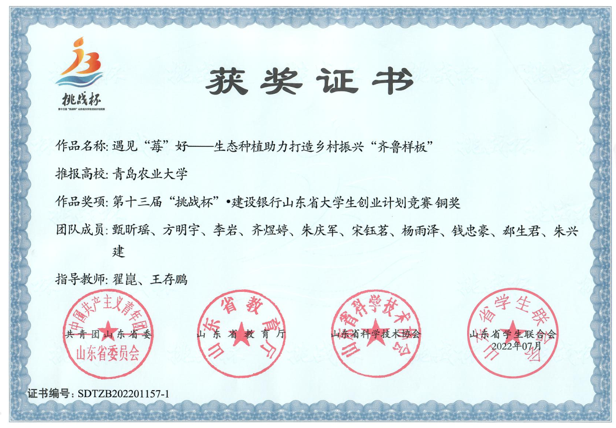 13.第十三届“挑战杯”山东省老员工创业计划竞赛
