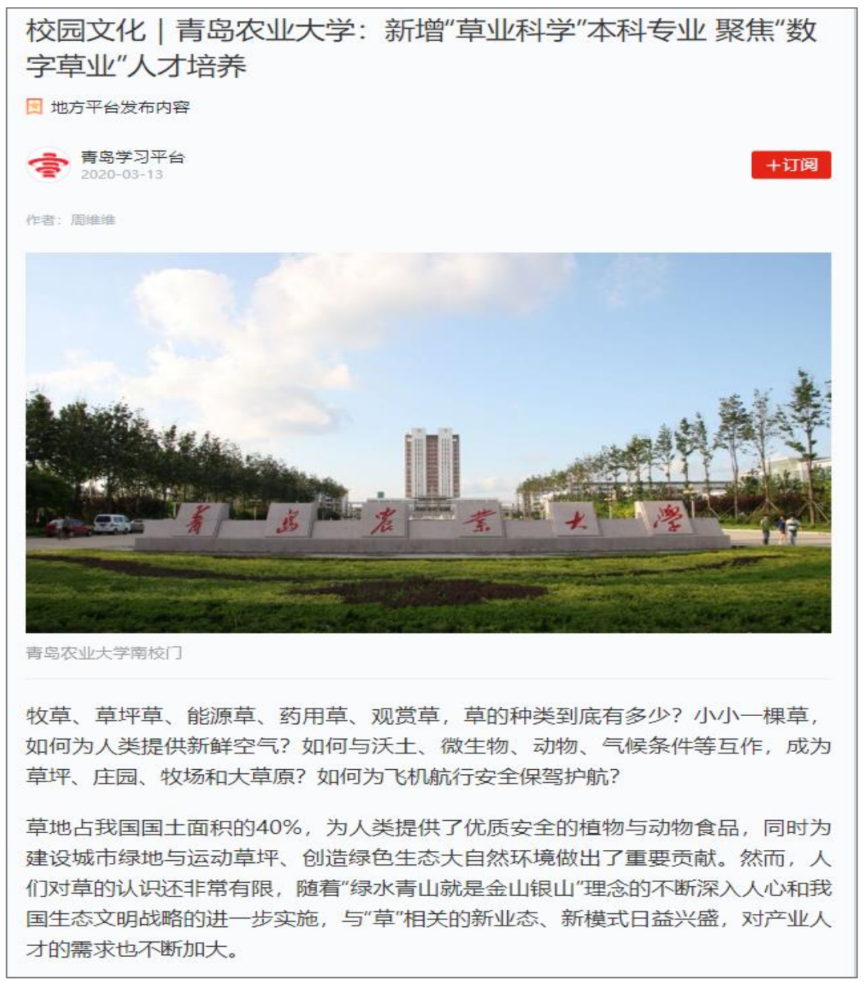 30.习强国青岛学习平台: 报道122cc太阳成集团官网聚焦“数字草业”人才培养