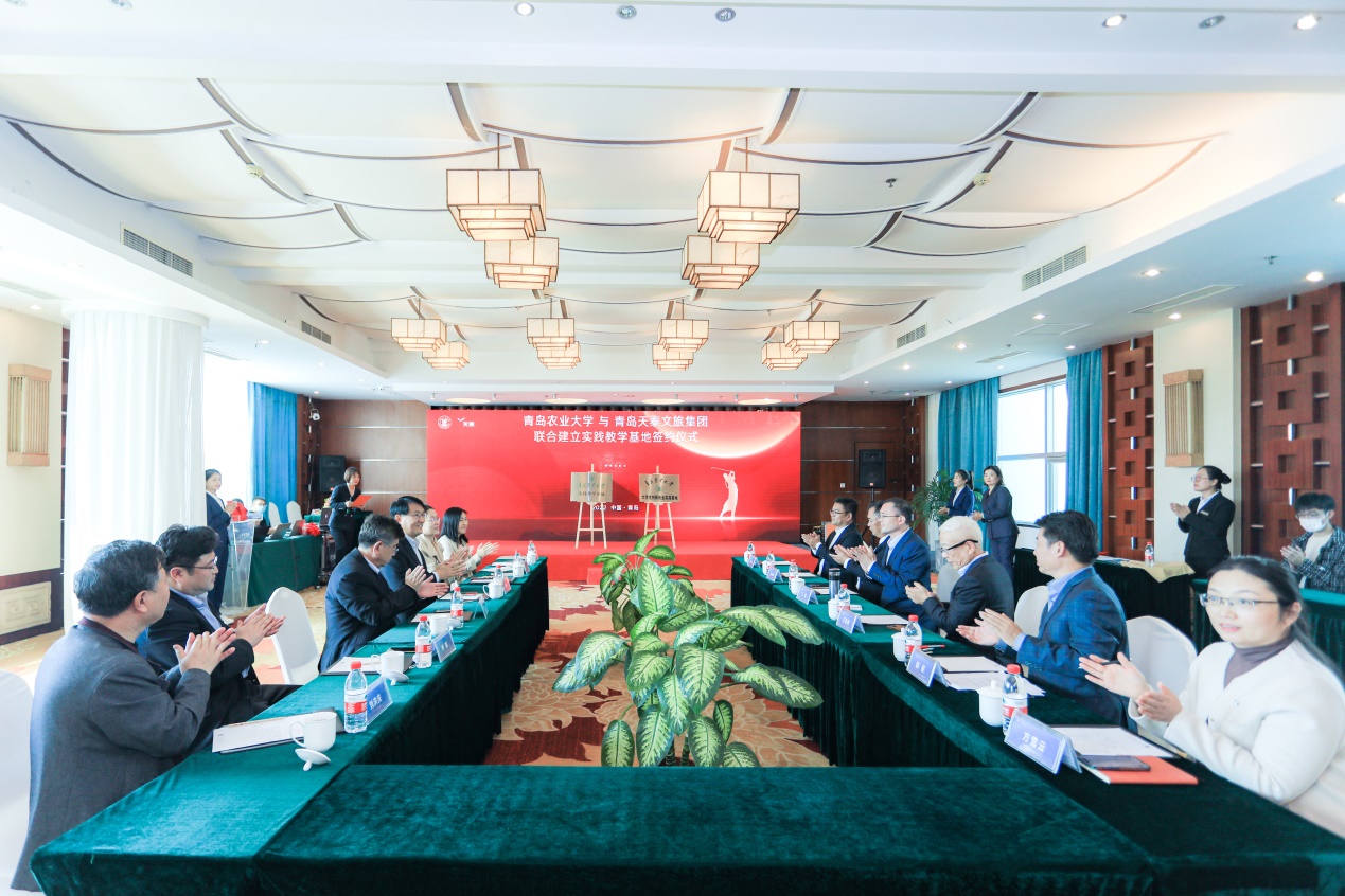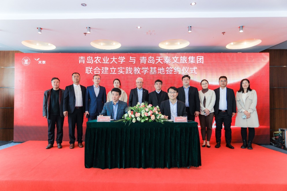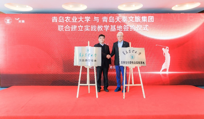 11月2日,122cc太阳成集团官网与青岛天泰文旅产业集团有限公司校企共建实践教学基地和创新创业实践基地揭牌暨“天泰山高尔夫奖学金”签约仪式,在青岛天泰文旅产业集团有限公司举行。公司党委委员、副董事长田义轲,草业公司党委书记乔磊,经理王增裕,副经理孙娟等,天泰集团创始人王若雄主席、天泰文旅集团总裁赵民、天泰文旅集团助理总裁王鹏、天泰山高尔夫总经理吴海峰、草坪总监李振奇等出席了本次揭牌签约仪式。