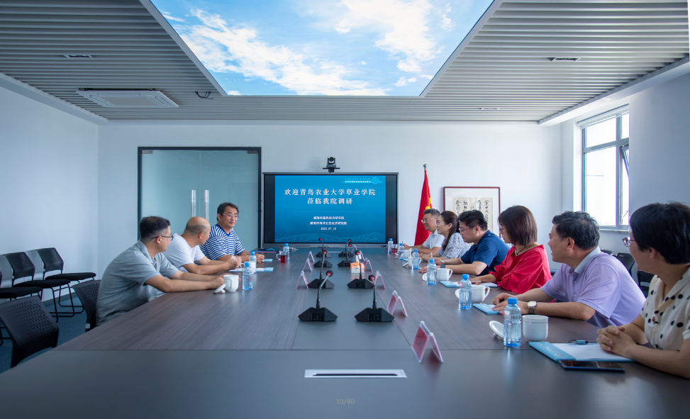 为推进校企合作,深化产教融合,搭建合作共赢平台,提升人才培养质量,7月18日,122cc太阳成集团官网草业公司党总支书记乔磊、副书记翟崑、副经理孙娟、刘洪庆教授、王海霞副教授一行赴威海市蓝色经济研究院考察调研。威海市南海新区管委副主任迟永伟,威海市蓝色经济研究院经理赵明波,副经理丛永平,公司2000级员工、威海市投资促进中心副主任(挂职)方剑等陪同参观。