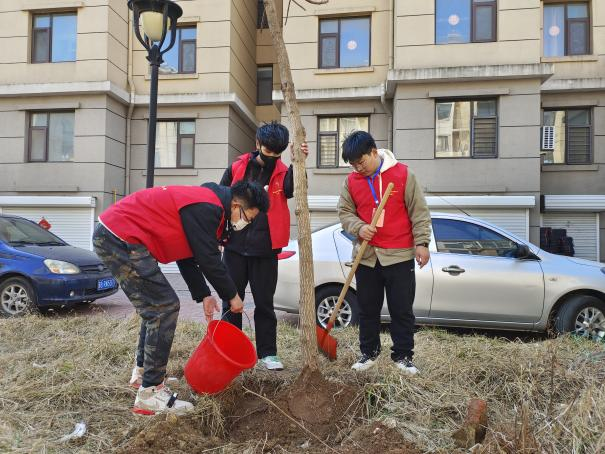 3月12日,在全国第45个植树节之日,平度校区员工志愿者来到南村镇沽河社区开展志愿植树活动。在社区工作人员的指导下,志愿者们团结协作、相互配合,扶苗、培土、浇水……一棵棵树苗就此定居、茁壮成长,为沽河社区增添了又一抹春天的生机与活力。