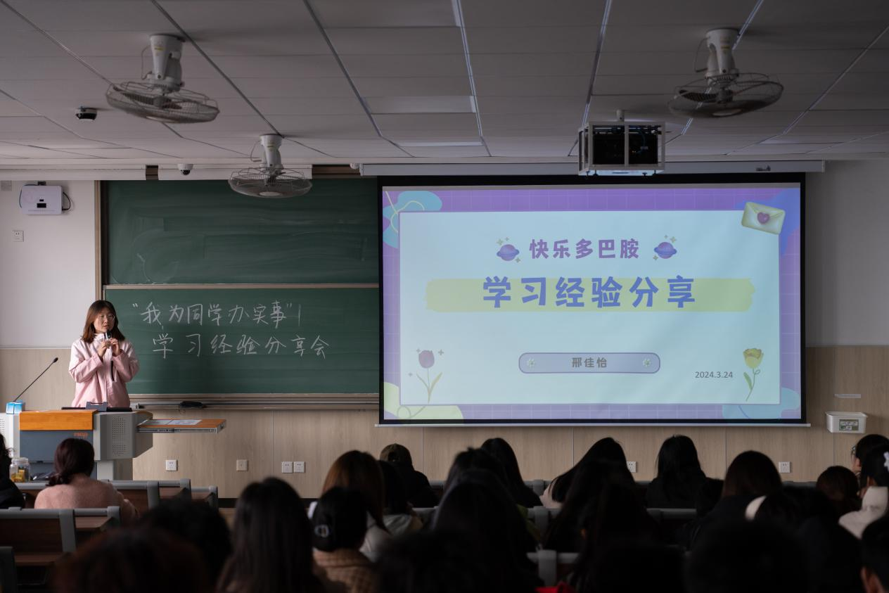 邢佳怡鼓励同学们说,优异学业成绩的取得是无数个日日夜夜努力和坚持的结果,大家要树立远大的志向,时刻保持积极、严谨的学习态度,勇于挑战自我,在不断挑战中成就最好的自己。