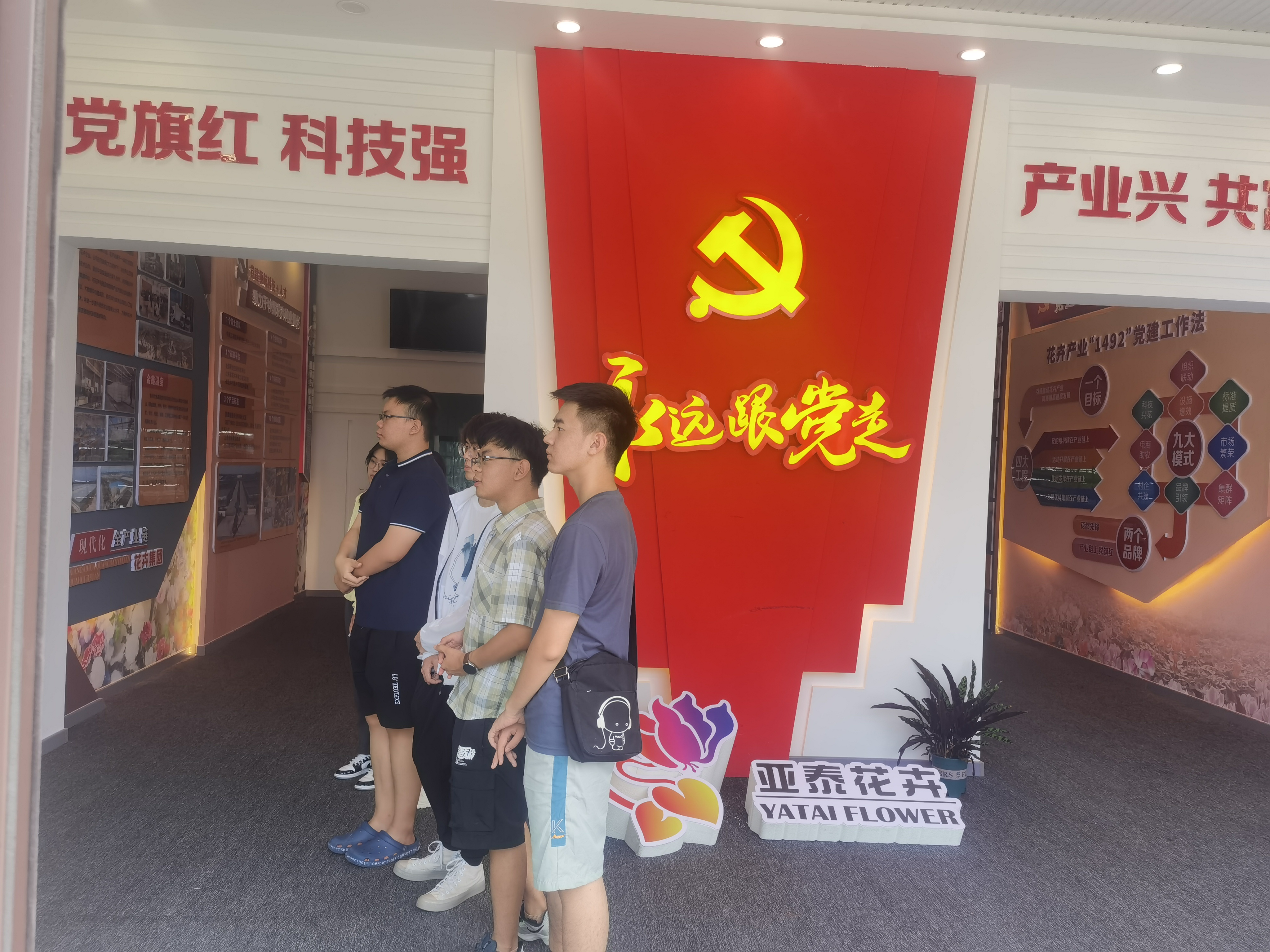 在亚泰花卉科技有限公司,团队成员走进温室大棚,学习了规范化大面积种植蝴蝶兰技术,了解了温室智能管理系统的功能以及工作原理。