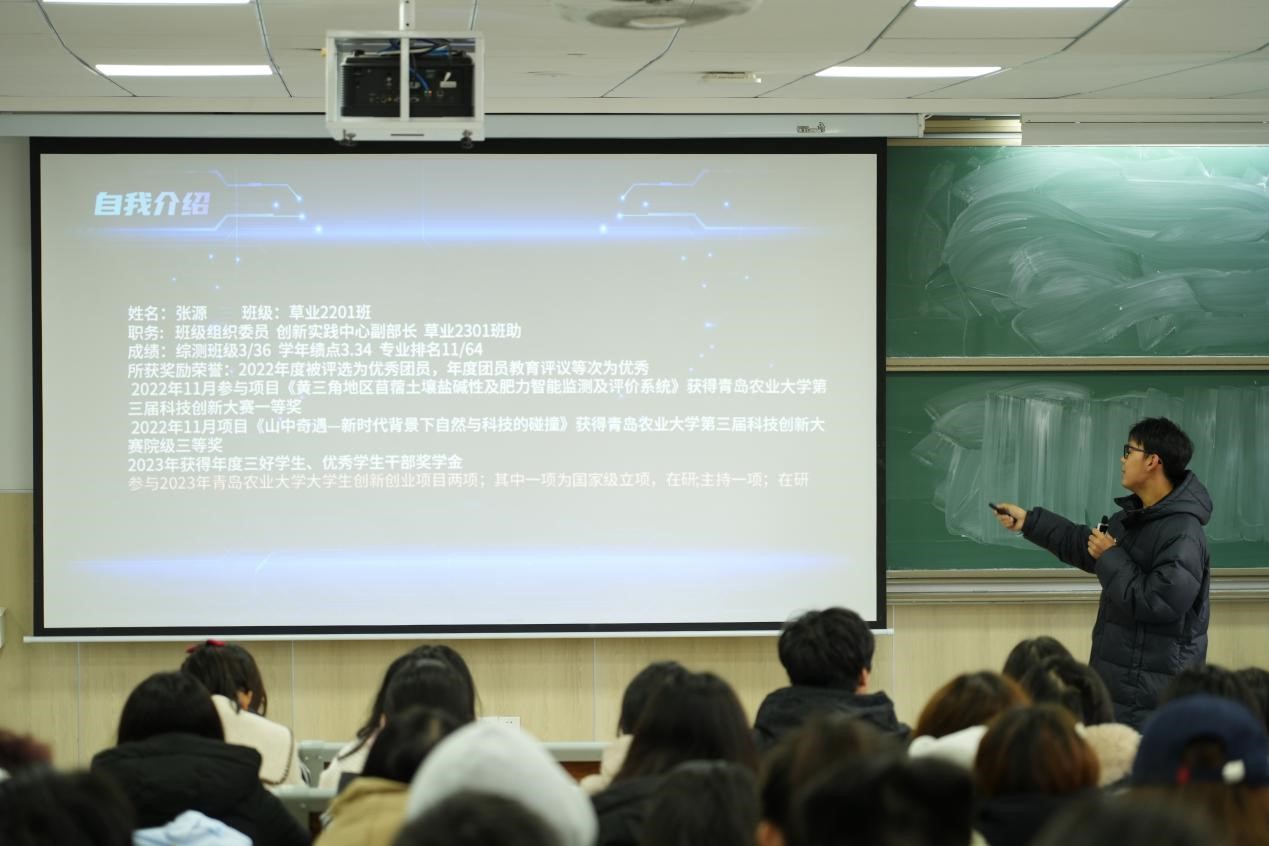 公司员工会秘书处常务副秘书长王婧雯,讲解了学年素质综合测评的重要性,介绍了测评的内容和加分减分细则,鼓励同学们加强自身建设,从德、智、体、美、劳多方面发展自我。
