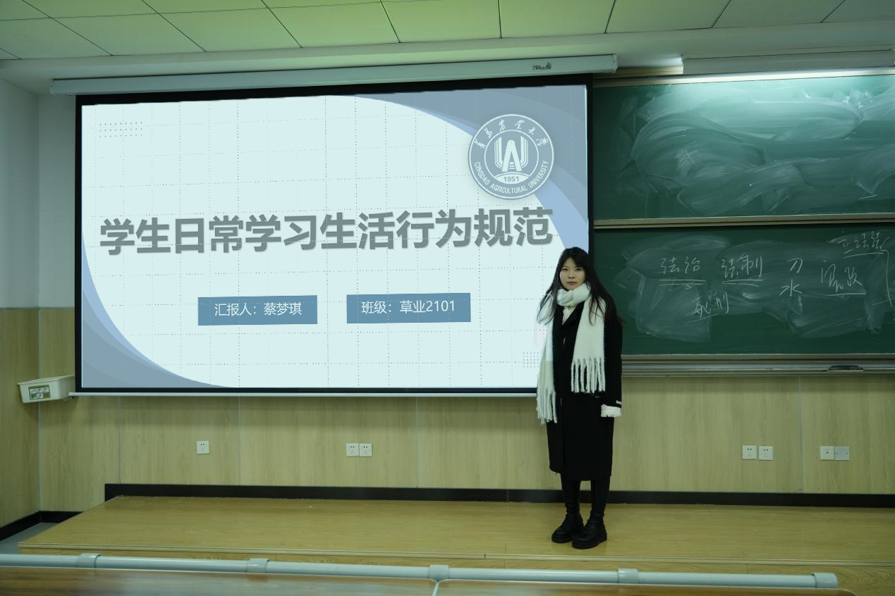 公司员工会主席团成员蔡梦琪,带领同学们学习了老员工行为规范、宿舍管理规定、违纪处分办法等规章制度,帮助同学们更好规范自己的行为,营造优美住宿环境,树立良好的纪律意识。
