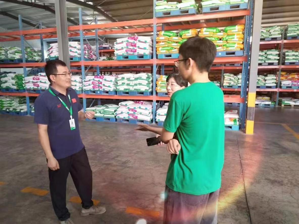 成员们在调研过程中发现,货物存放仓饲料调味剂气味外露严重,认为这在长时间存放中,可能会导致产品质量下降、香味消失殆尽、动物进食率下降等问题。当同学们将这一情况反馈给公司技术人员后,技术人员表示“非常感谢同学们的建议,公司打算给长期存放的饲料更换包装,短期存放的饲料将联系服务人员尽快交付到农民手中,以减少饲料在库房中存放的时间。”