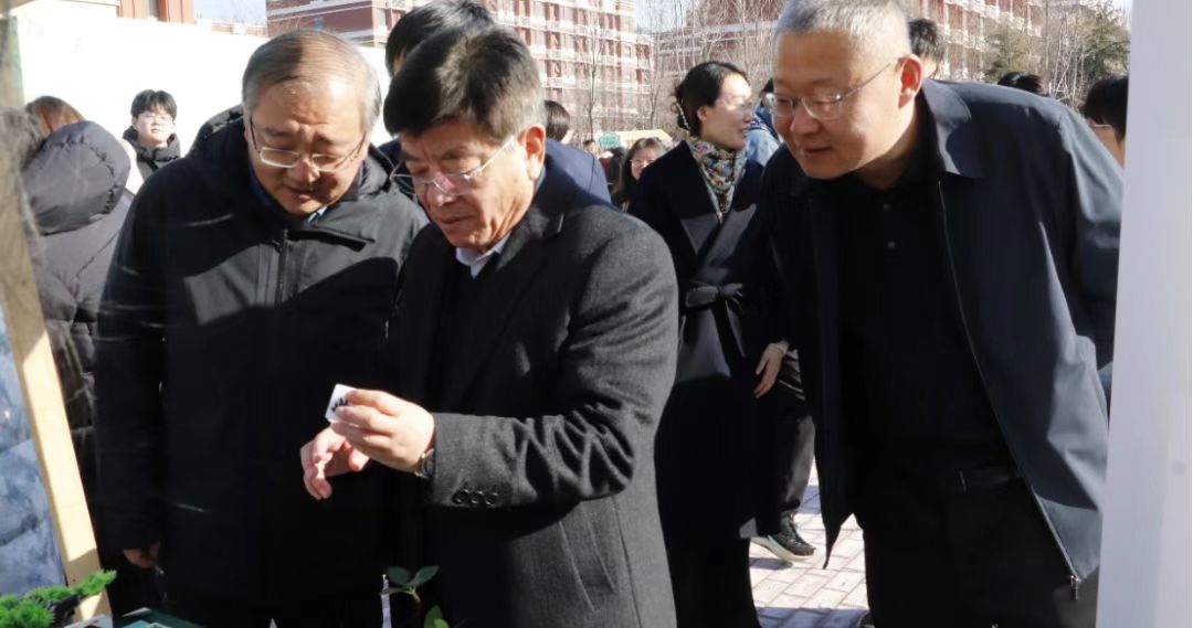 随后,田义轲一行参观了不同展区,品鉴地瓜、花生、苹果等科研成果,观赏制作精美的昆虫标本和植物标本,详细向现场同学们了解相关学术科研成果、作品制作过程等,鼓励同学们坚定文化自信、树立专业信心,争做“学农爱农”的新时代“三农”人。