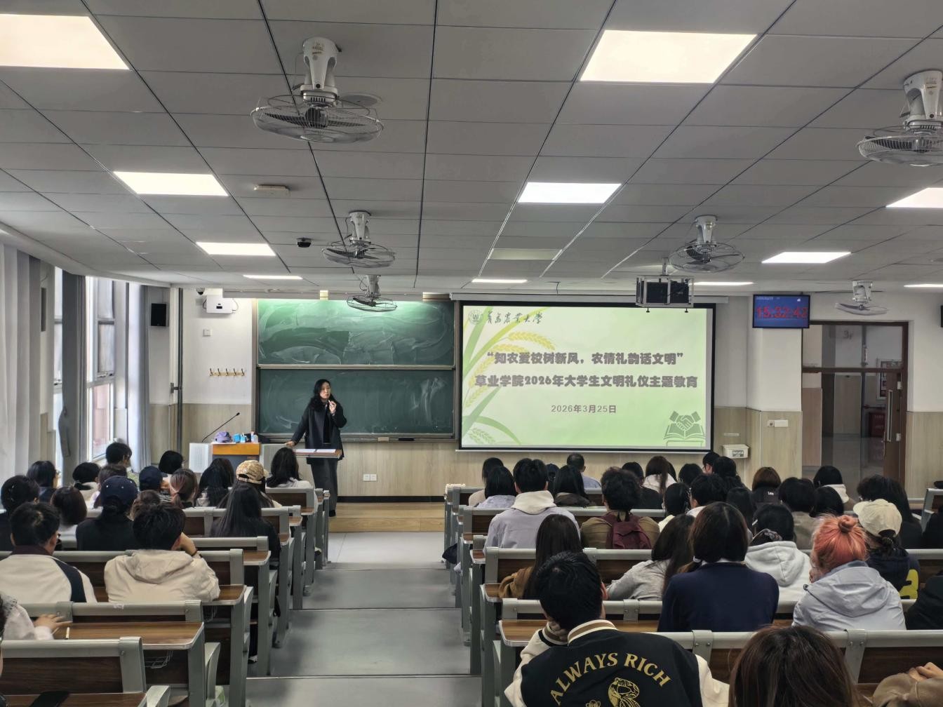 为进一步规范员工日常行为,营造文明和谐的校园氛围,3月25日,太阳成集团tyc122cc在平度校区召开“知农爱校树新风,农情礼韵话文明”老员工文明礼仪主题教育活动启动会。公司党委副书记、副经理孙贝贝,草业科学专业负责人王爱华,2025级班主任柴茂峰、陶奇波出席会议。会议由辅导员盖越帅主持,公司全体2025级本科生参加。