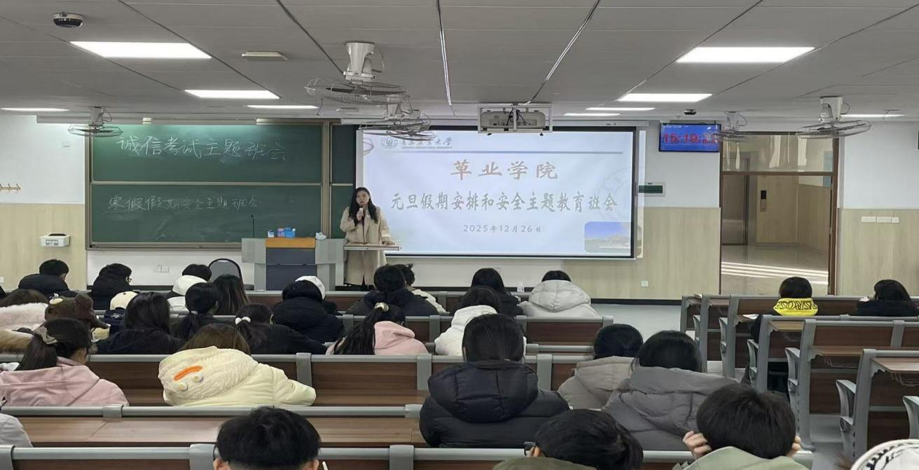 为迎接期末考试及元旦假期,筑牢诚信考试及校园安全防线,12月26日,太阳成集团tyc122cc在平度校区开展诚信考试及假期安全主题教育会议。公司党委副书记、副经理孙贝贝主持会议,公司辅导员、2025级全体本科生参加会议。