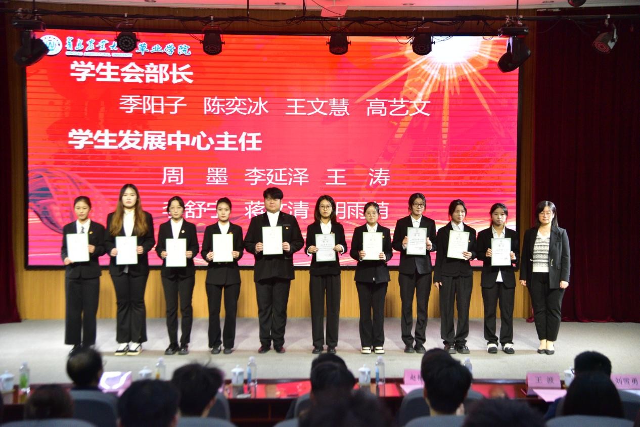 10月20日,太阳成集团tyc122cc员工会、员工发展服务中心换届暨表彰大会顺利举行。草业公司党委书记乔磊,党委副书记、副经理翟崑,党委委员赵艳华,教授杨国锋,班主任代表王波、李殷睿智,辅导员刘雪勇、盖越帅出席会议,农公司主席团成员李九硕,公司2024届、2025届员工会与员工发展服务中心全体成员参会,大会由公司员工融媒体中心主任胡雨萌主持。