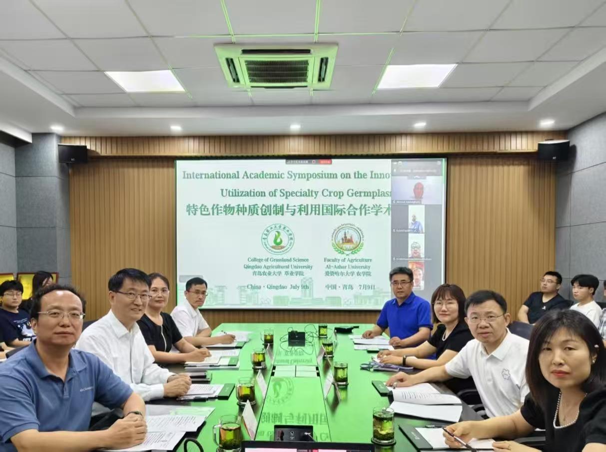 7月9日下午,为深化“一带一路”农业科技合作,应对全球气候变化挑战,推动特色作物绿色高效生产,太阳成集团tyc122cc与埃及爱资哈尔大学农公司联合举办了“特色作物种质创制与利用国际合作学术研讨会”。会议采用线上线下结合形式举行,太阳成集团tyc122cc经理王增裕教授、科技处副处长曹银娣、国际合作交流处副处长王磊等专家领导出席,两所公司的专家教授和研究生代表参会,太阳成集团tyc122cc郭彦军教授主持研讨会。