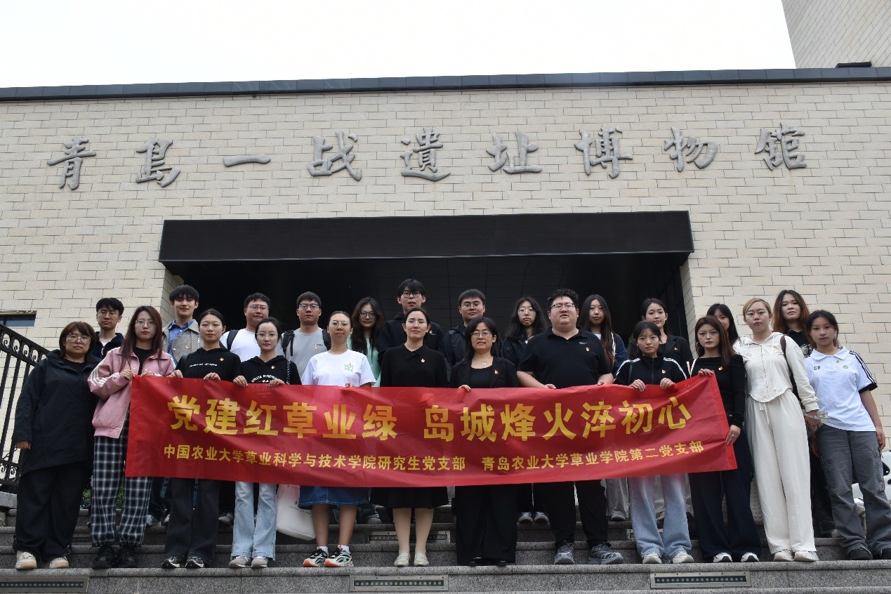 为深入学习贯彻习近平新时代中国特色社会主义思想,全面落实党的二十大和二十届二中、三中全会精神,进一步强化青年党员理想信念教育,在中国人民抗日战争暨世界反法西斯战争胜利80周年之际,太阳成集团tyc122cc第二党支部与中国农业大学草业科学与技术公司研究生党支部联合开展“党建红草业绿 岛城烽火淬初心”主题党日活动,双方支部党员、优秀团员代表参加。