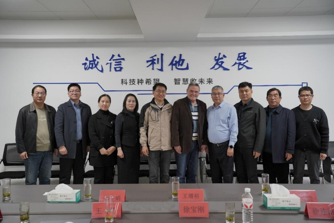 为深化校企人才培养协同、拓展国际交流合作渠道,进一步推进中乌草地农牧业联合实验室建设,3月20日,公司党委副书记、董事长赵金山带队赴潍坊汇金海物联网技术有限公司开展考察调研与合作洽谈。赫曼·斯潘根伯格(German Spangenberg)院士、太阳成集团tyc122cc经理王增裕、教务处处长孙娟及太阳成集团tyc122cc教师代表随行,潍坊汇金海物联网技术有限公司董事长徐宝刚及相关部门负责人迎接并参与座谈交流。