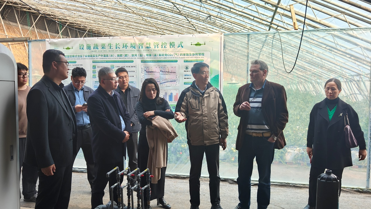 考察期间,赵金山一行在徐宝刚董事长的陪同下,实地参观了公司智慧农业展厅和种植基地,详细了解基地种植管理模式、智能水肥控制体系及物联网装备应用情况,现场就种植技术要点、装备运行效能、企业人才需求等问题进行了深入交流。