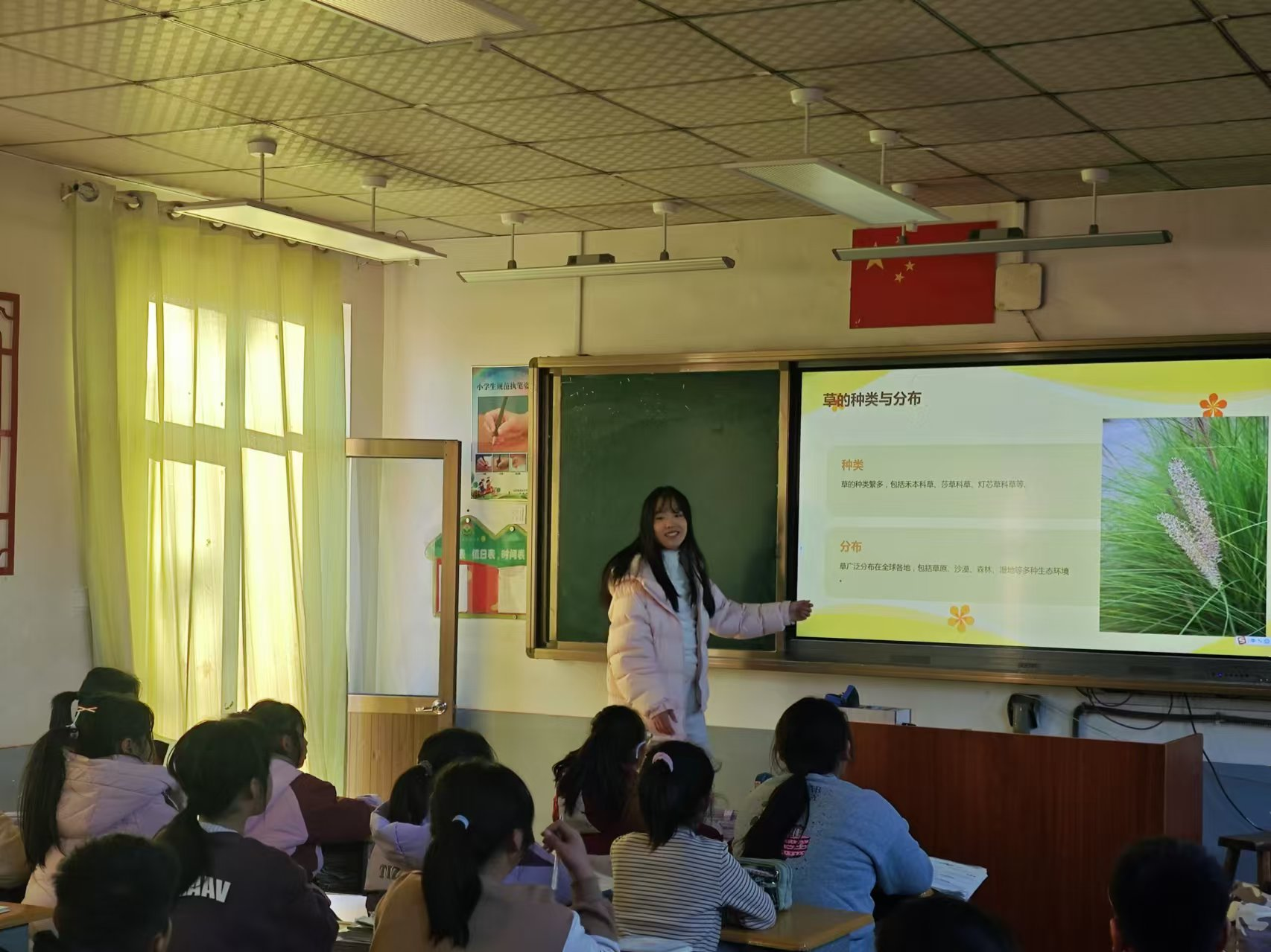 12月3日,草坪科学与工程2401和2402两个团支部来到平度南村镇北村小学开展“以草为媒,共筑绿色未来”志愿服务活动,通过播放草类植物科普视频,讲解常见草种类与分布、植物习性等植物知识,向小员工们普及生态保护与草业知识,激发孩子们的环保意识。