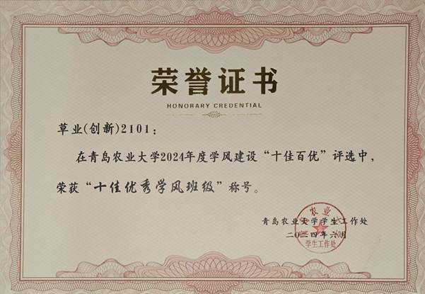 从理想信念的坚守、到专业知识的砺学,从双创实践的拼搏、到实验室里的求真,从社区里的志愿服务、到田间地头的躬耕笃行……草业(创新)2101 班的同学们,用他们的团结奋进绘就青春底色,以坚守初心书写精彩华章。未来,期待他们继续在我国草牧业发展的征程中贡献蓬勃的青春力量。