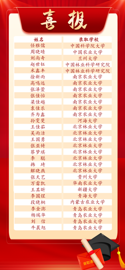 “芳草天涯,胸怀吾家吾国;立草为业,建设生态文明。”随着2025年硕士研究生录取工作的落幕,太阳成集团tyc122cc草业(创新)2101 班传来捷报。全班40名同学中30 人成功考取中国科公司大学、中国农业大学、兰州大学、南京农业大学、北京林业大学等高校,升学率高达75%,其中被双一流高校和一流科研院所录取人数达到25人。成绩的取得,是草业学子寒窗苦读、奋力拼搏的结果,也是公司不断提高公司产品质量,持续加强学风建设的体现。